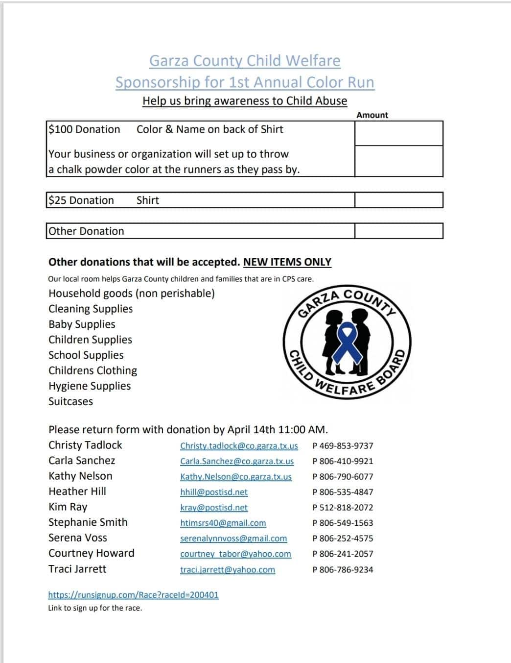 Garza County Child Welfare 1st Annual Color Run